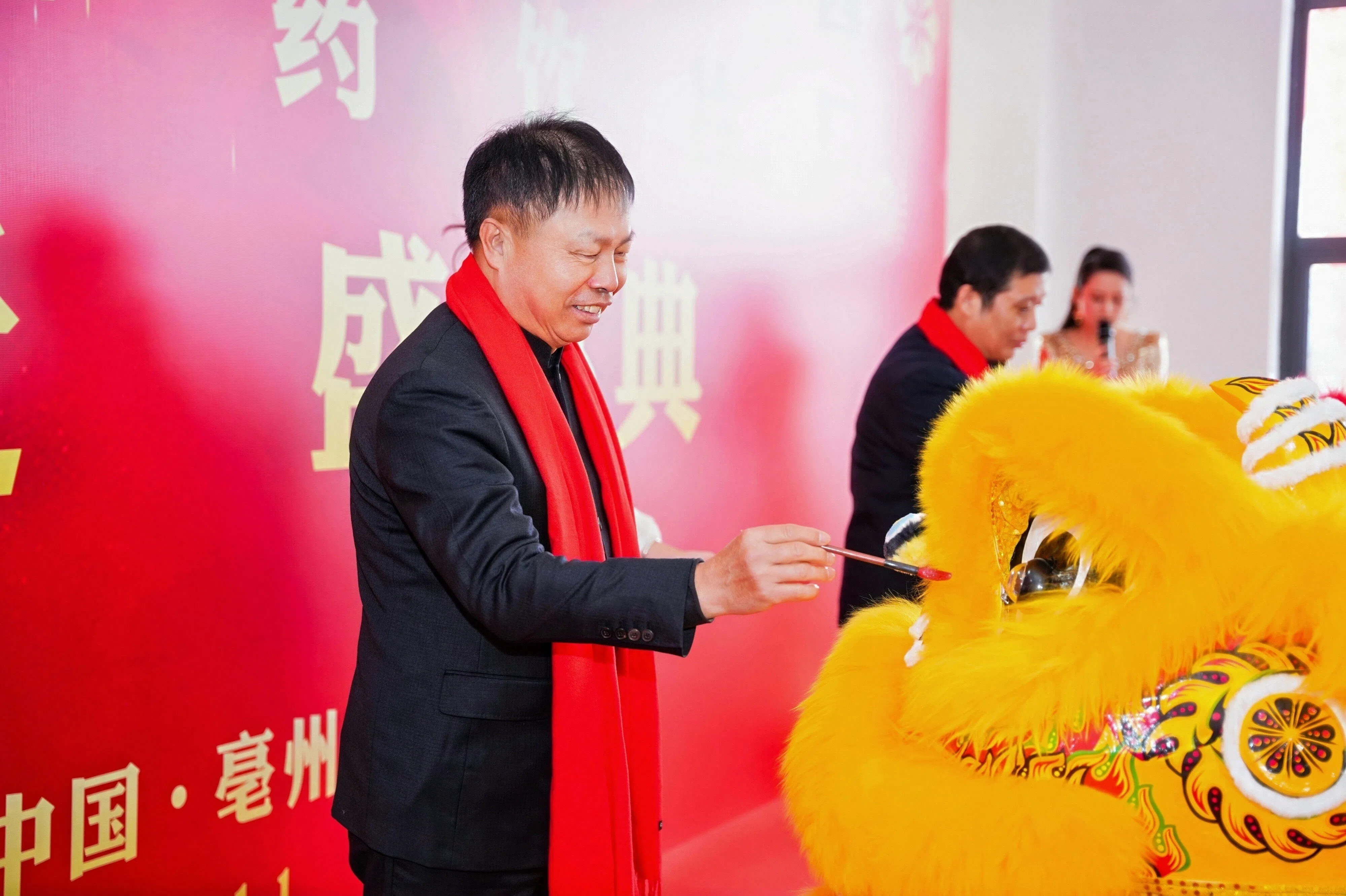 鑼鼓震天,醒獅騰躍!鷺燕集團(tuán)董事長(zhǎng)吳金祥為祥獅點(diǎn)睛,獅眼生輝、瑞氣滿堂。