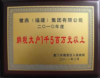由廈門市湖里區(qū)政府舉辦的 “湖里區(qū)2010年度納稅先進(jìn)企業(yè)”的評選名單已經(jīng)正式揭曉,鷺燕(福建)集團(tuán)有限公司榜上有名,獲得了 “湖里區(qū)2010年度納稅大戶1千5百萬元以上先進(jìn)企業(yè)”的榮譽稱號。自2007年底搬遷至湖里區(qū)以來,我司已連續(xù)三年獲此榮譽稱號。