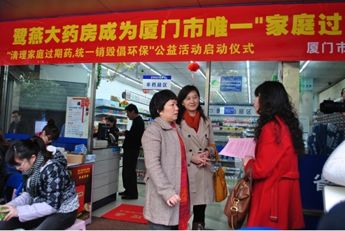 2012年3月15日上午,由廈門市食品藥品監(jiān)督管理局和廈門鷺燕大藥房有限公司聯(lián)合發(fā)起的“清理家庭過期藥、綠色健康倡環(huán)?!惫婊顒訂觾x式在鷺燕大藥房前埔分店舉行。本次活動的主旨是倡導(dǎo)健康環(huán)保,同時給廣大人民群眾營造一個安全健康的用藥環(huán)境,有效減少因過期藥品使用給家庭帶來的健康傷害。